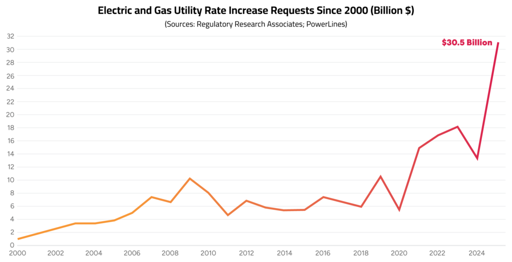 Utilities Requested Record $31 Billion in Rate Increases in 2025, Double That of 2024